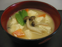 1.豆腐は布巾をしいたザルの中に入れて、手を粗くほぐして水切りをします。 2.しめじは、いしづきを除き、小房にわけます。にんじんは、薄いイチョウ切りにします。さやえんどうは筋を除き、さっとゆでておきます。 3.鍋にごま油を熱し、豆腐を炒め、次ににんじん、しめじを入れて炒め、だしを入れます。煮立ったらアクを除きながら、4〜5分煮てみそを加えて、火を止め、しょうが汁を落とします。
